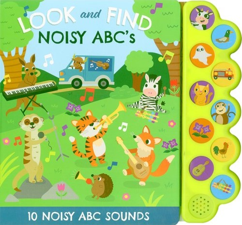 The “10 Sounds – Look & Find Book Series” includes several interactive board books for children. These books combine vibrant illustrations with 10 sound buttons, encouraging children to search for hidden objects and pictures while learning.